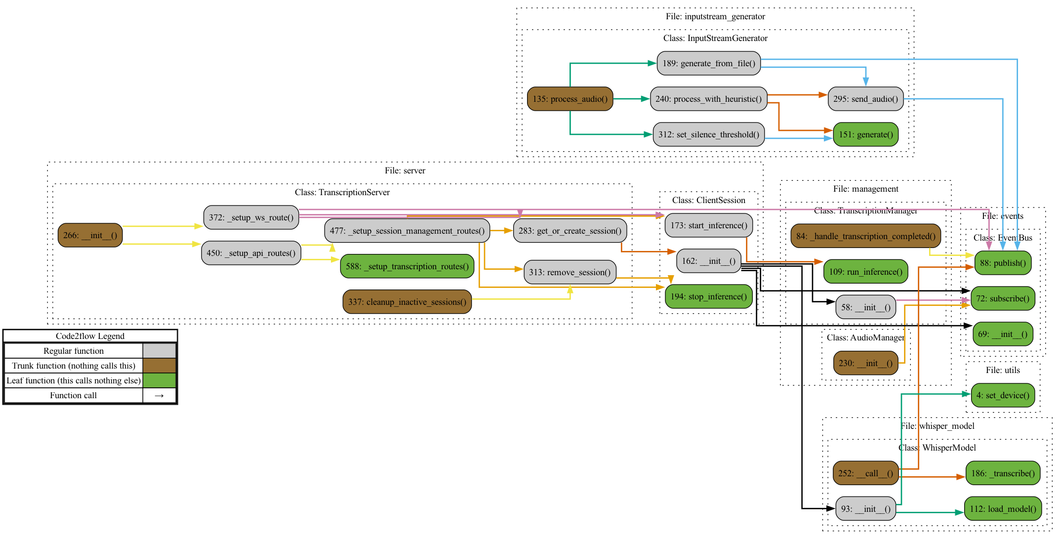 Multi-threaded Asynchronous Processing: Leverages asynchronous programming (via asyncio) for optimal performance, allowing the transcription engine to handle high volumes of audio input while processing transcription results concurrently.